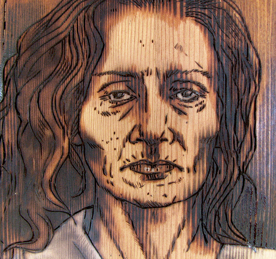 Custom portraits woodburned onto reclaimed wood.